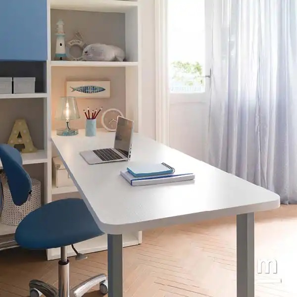 Главным героем этой композиции является книжный шкаф Outline: пространство открытого книжного шкафа чередуется с настенными ящиками, один из которых закрыт распашной дверцей, а другой - ящиками. Лакированные настенные ящики воплощают в жизнь бесконечные композиционные решения в непрерывном движении. В этом случае книжный шкаф становится исходной точкой стола, поддерживаемого в центре комнаты прямыми опорами из лакированного металла. В помещении, предназначенном для детей, размещение стола-полуострова, доходящего до центра комнаты, должно осуществляться в полной безопасности. Вот почему столешница имеет закругленные края, чтобы дети могли свободно передвигаться.